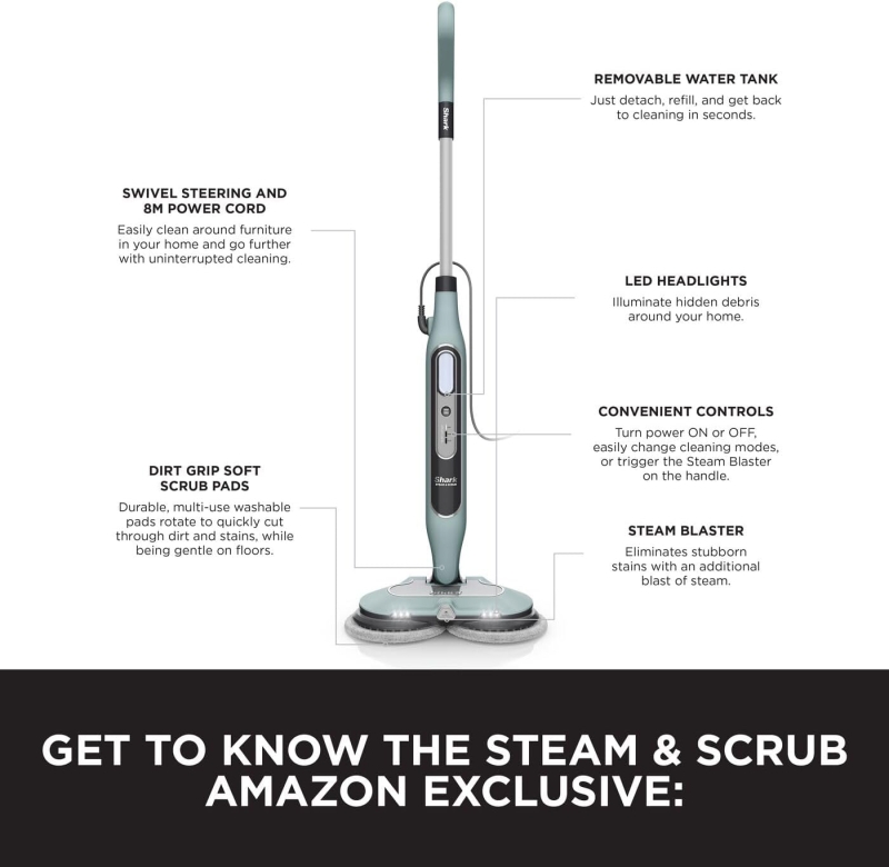- potrivit pentru toate podelele dure sigilate, inclusiv placi ceramice, marmura, parchet si piatra. Lavete reutilizabile, lavabile la masina. Rezervor de apa detasabil pentru umplere usoara. Cablu de alimentare de 8 m. Iluminare LED pentru evidentierea murdariei.