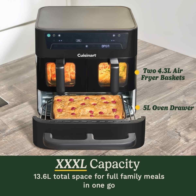 Friteuza cu aer cald si cuptor Cuisinart Tri Zone, 13, 6 L, 3 zone gatire, 2 cosuri 4, 3 L + cuptor 5 L, 9 functii